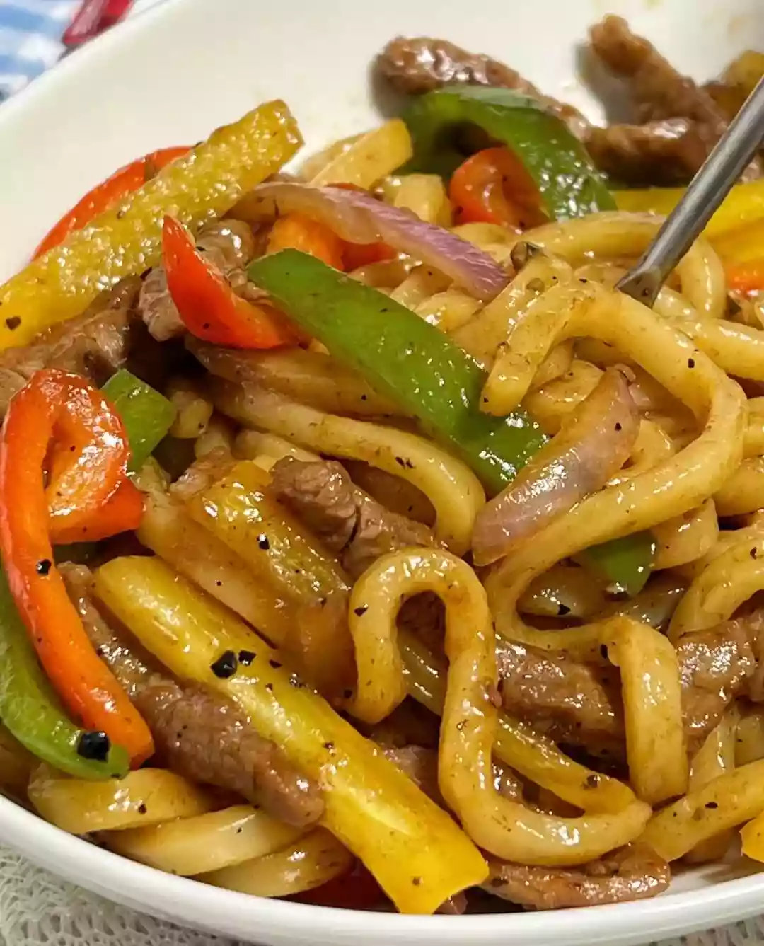 Black Pepper Beef Udon Noodles: A Mix of East and West