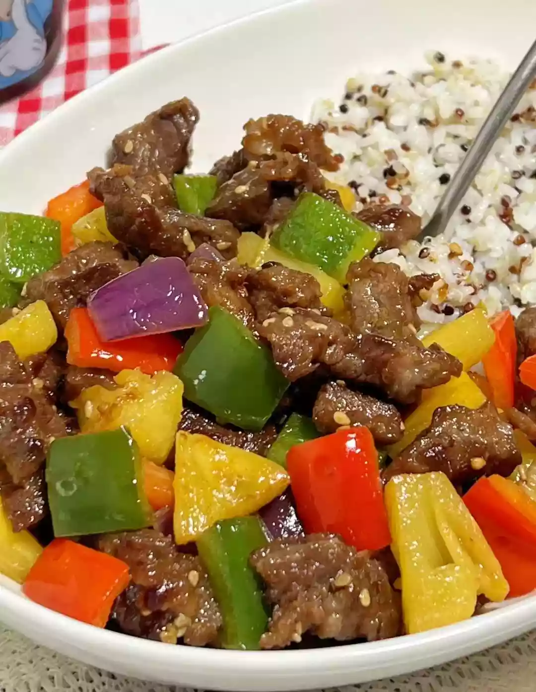 Pineapple Bell Pepper Beef Cubes Rice: A Tropical Twist!