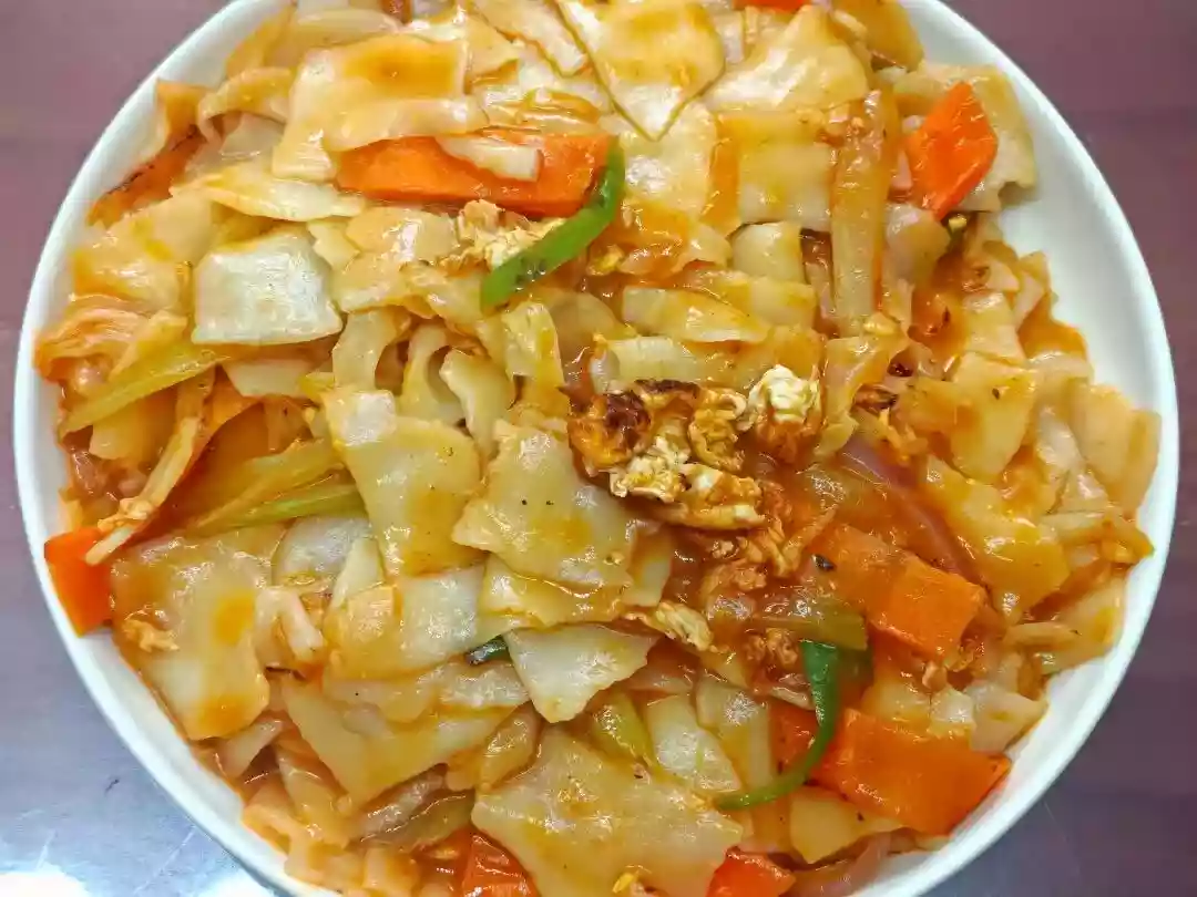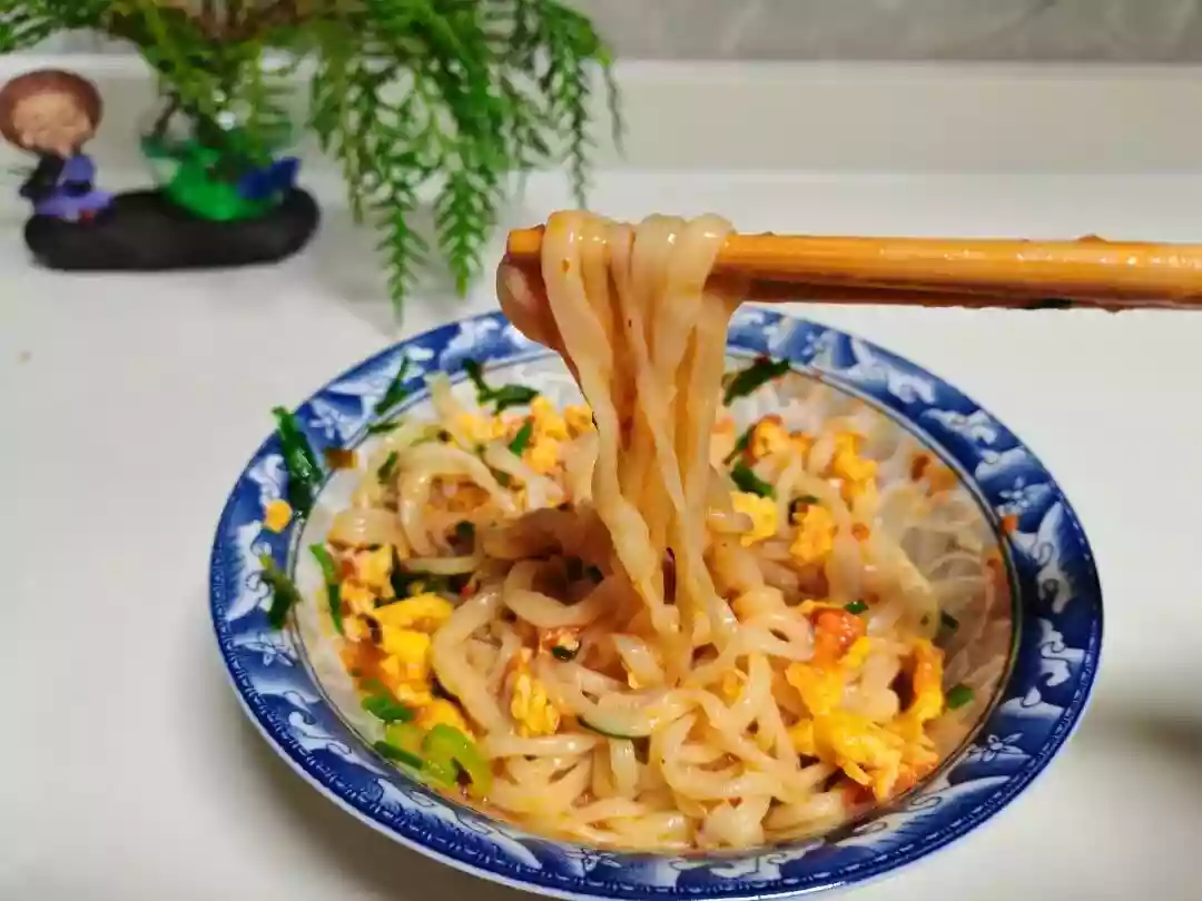 When the water is boiling, break the noodles into pieces and cook them until they are done. Then, put them in a bowl (I like to add vinegar and premium soy sauce to the bottom of the bowl). Pour the meat sauce over the top and sprinkle with chili powder, minced scallions, and garlic. Finally, pour hot oil over the chili powder and scallion-garlic mixture.[](assets/ciD39bTbum3gyvqYototyw_3.Egg Fried Noodle Sheets!jpg) ### How to Get Ready and Cook: