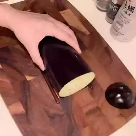 Cut the eggplant lengthwise first, then keep cutting as you turn it.