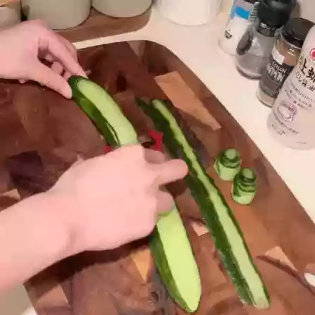 1. Cut the cucumber into pieces by cutting it diagonally.