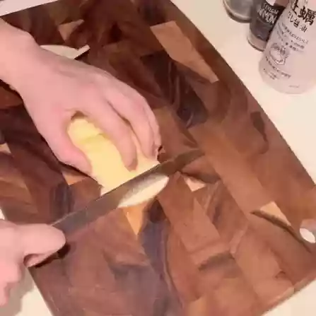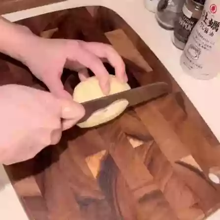 P.S. Let the slices sit in cold water for a while. It helps get rid of the starch on the surface, which keeps the slices from sticking together when you fry them and keeps them from turning brown.