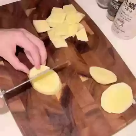 After that, cut the potato into even pieces to make paper-thin slices.